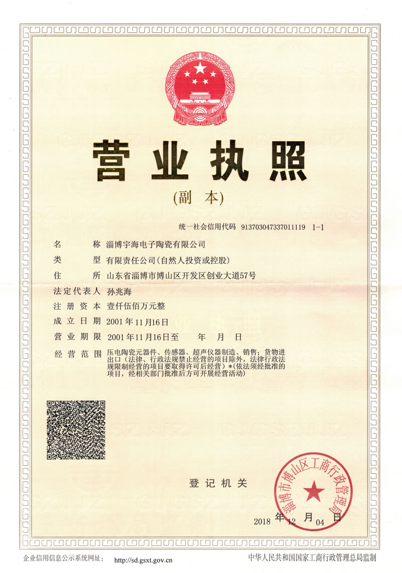 公司名稱:淄博宇海電子陶瓷有限公司